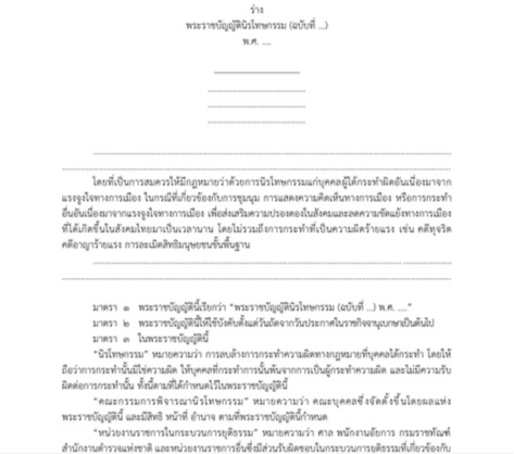 เตรียมยกร่างกฎหมายเพื่อเข้าสู่สภาจำลอง